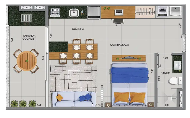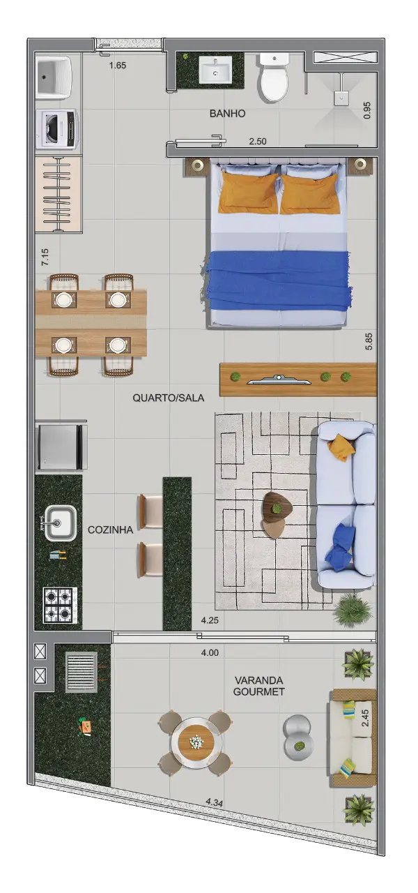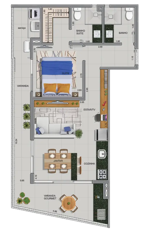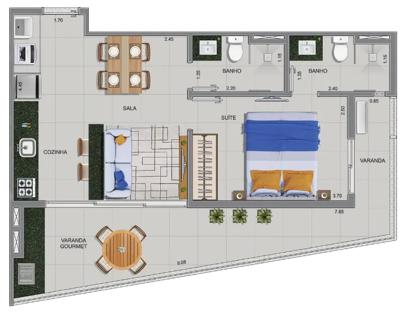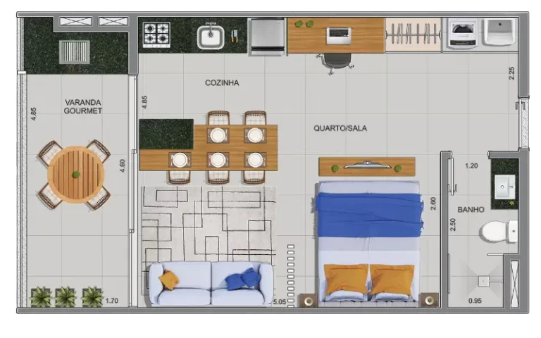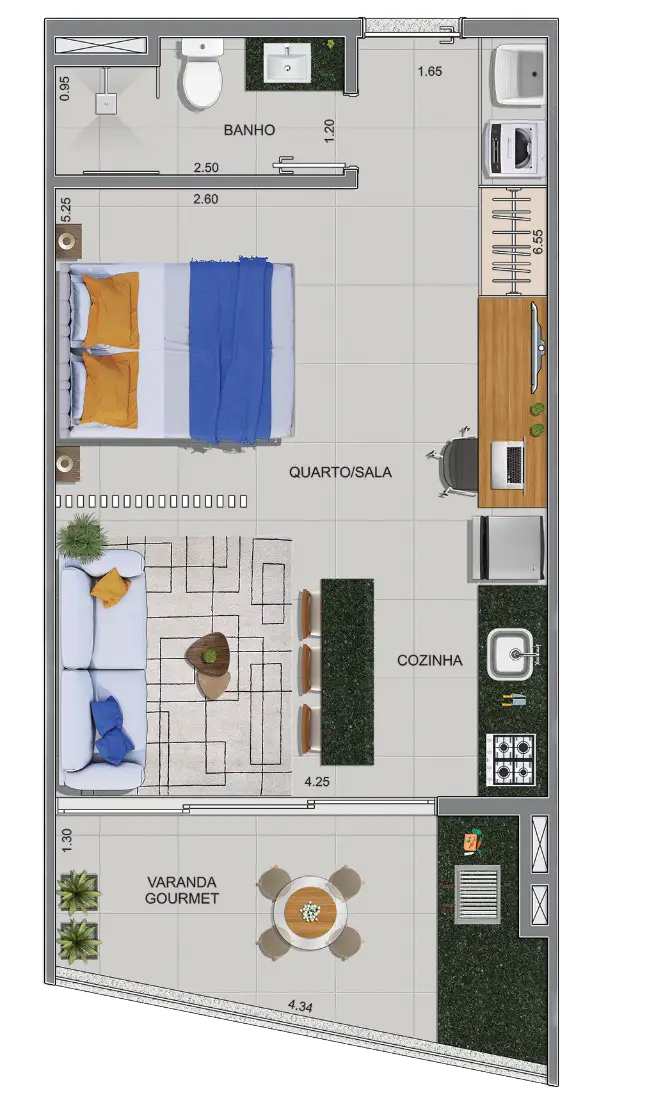 Com opções de studios e suítes de 37m² a 60m², este empreendimento oferece praticidade e conforto em cada detalhe.